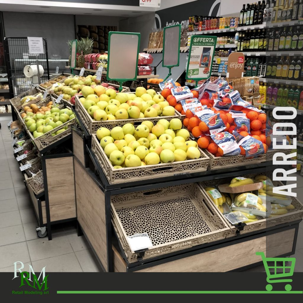 Retail Modeling cura l’arredo ortofrutta, immancabili i complementi ed accessori…e l’intramontabile sistema spesa Light BAG personalizzato!