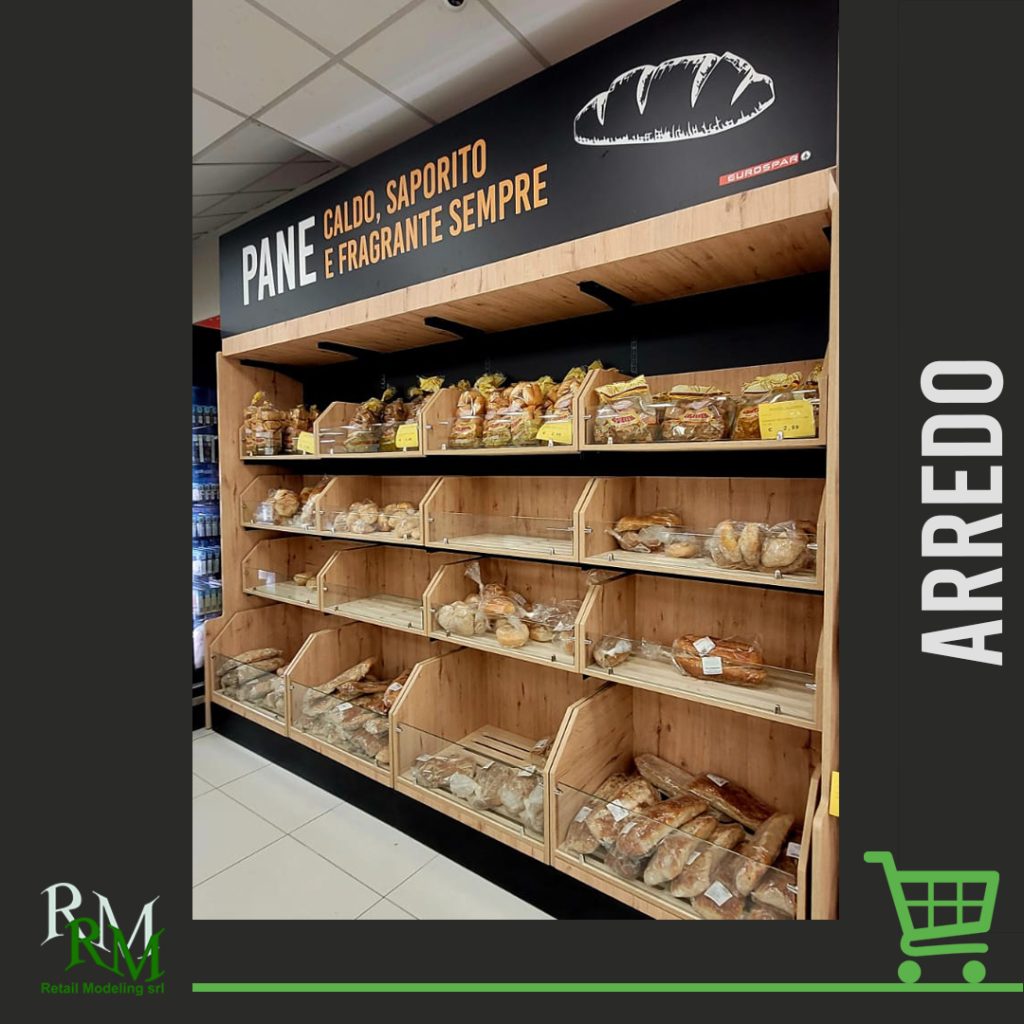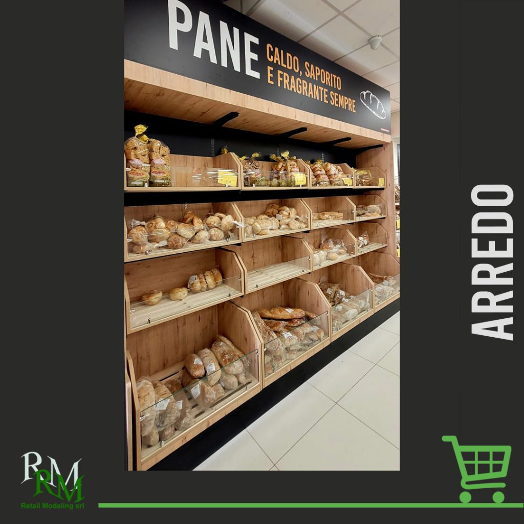 Panetteria con arredo dedicato e comunicazione personalizzata.